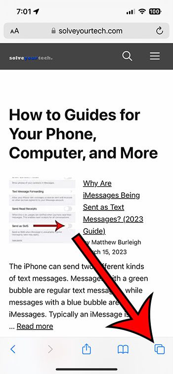 Adım 3: Ekranın altındaki X sekmeleri yazan açılır menüyü seçin, burada x şu anda açık sekme sayısıdır.