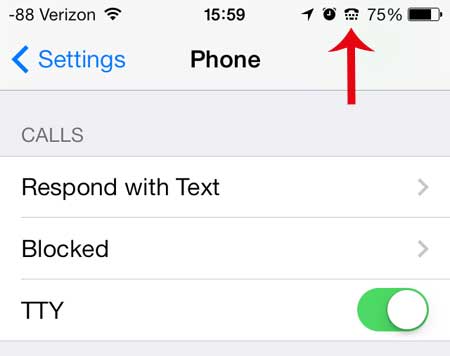 TTY'nin bir iPhone'da etkinleştirildiğini bileceksiniz, çünkü ekranın üst kısmındaki durum çubuğunda yeni bir sembol görüntülenecek. Bu sembol aşağıdaki okla belirtilmiştir -