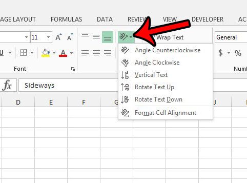 Excel 2013, verilerinizi yana doğru çevirebileceğiniz çeşitli yollar sunan bir döndürme düğmesine sahiptir. Aşağıdaki kılavuzumuz, bazı hücrelerinizin biçimlendirmesini gerektiği gibi ayarlayabilmeniz için bu düğmenin nerede olduğunu gösterecektir.