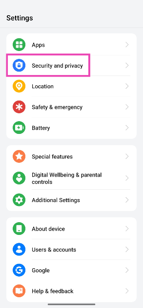 1. Adım:Gidip gelmekAyarlarve seçGüvenlik ve Gizlilik.