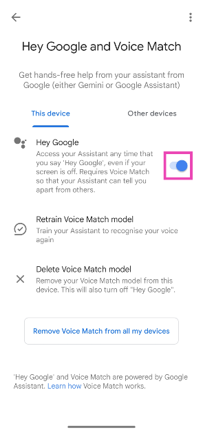 Adım 5:Yandaki geçiş anahtarını kapatınHey Google.