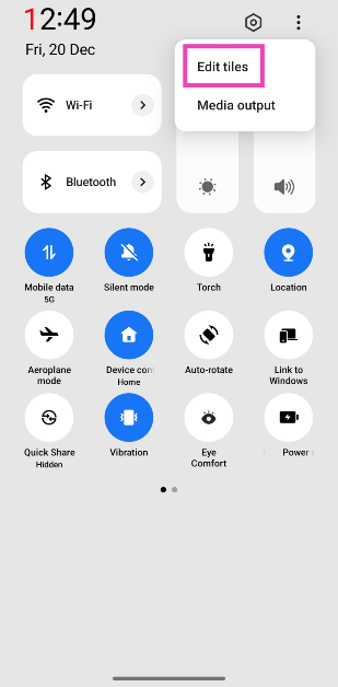 1. Adım: Kaydırmakondandurum çubuğuHızlı Ayarlar menüsünü ortaya çıkarmak için.