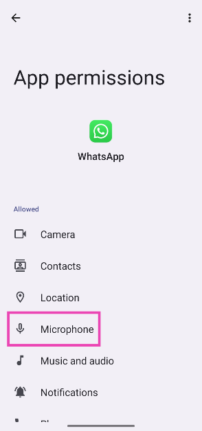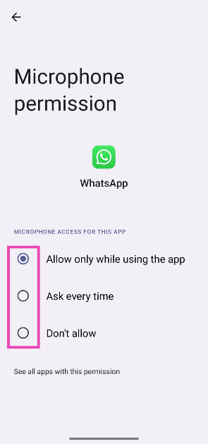 Adım 5:Mikrofon erişimini seçinseviyesiUygulama için.