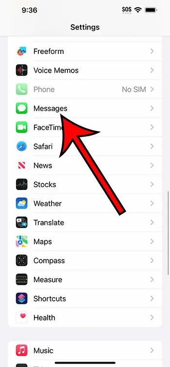 2. Adım: Aşağı kaydırın veMesajseçenek.