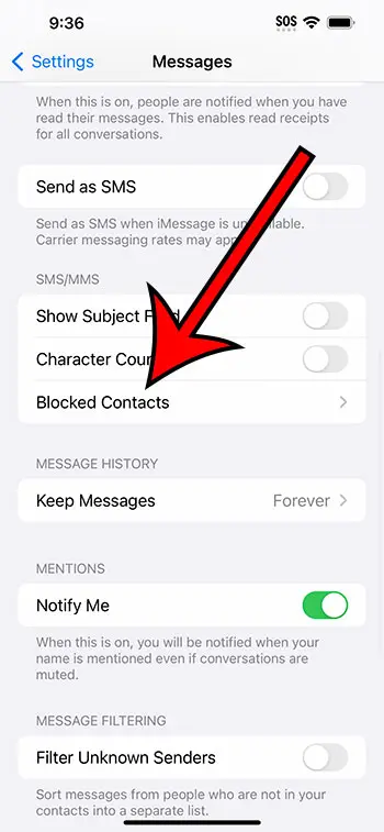 3. Adım: Aşağı kaydırın veEngellenen Kişilerseçenek.