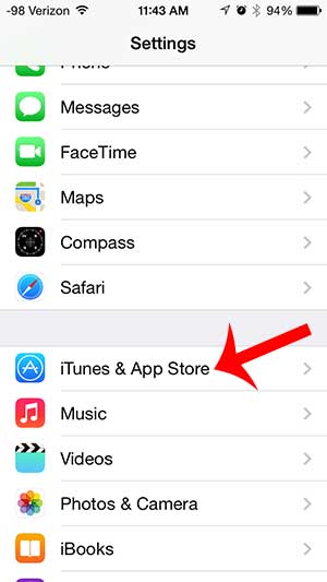 2. Adım: Aşağı kaydırın veiTunes & App Storeseçenek.