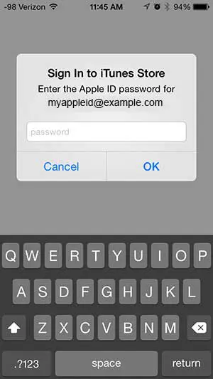 Adım 5: Apple Kimliği şifrenizi girin, ardındanTAMAMdüğme.