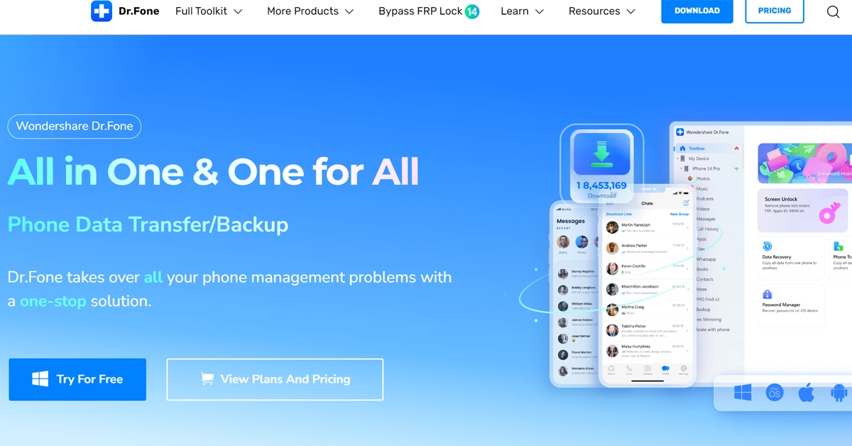 Wondershare Dr.Fone:Sadece verilerinizi yedeklemekle kalmayıp aynı zamanda yükseltme işlemine de yardımcı olan kapsamlı bir araç.