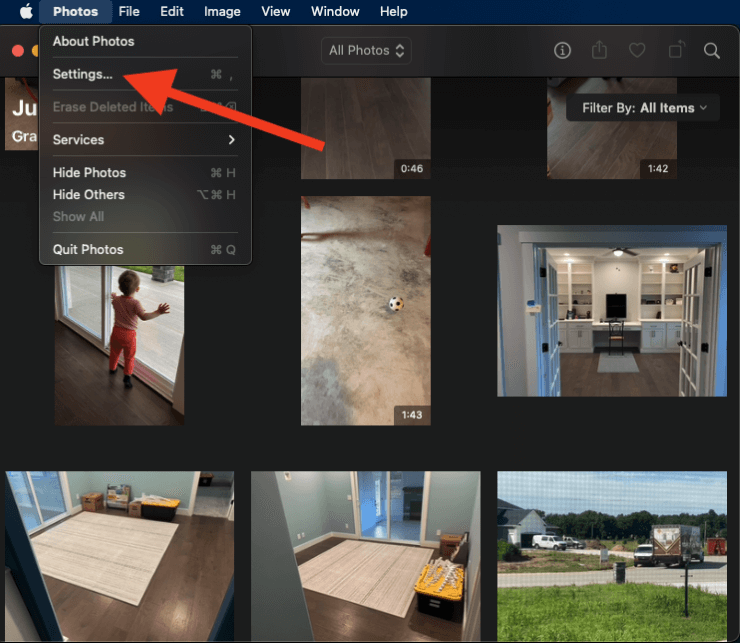 Uygulama açıldıktan sonra ekranınızın sol üst köşesindeki “Fotoğraflar” ı tıklayın. Görünen açılır menüde “Ayarlar” seçeneğini seçin.