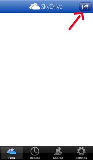 Henüz SkyDrive uygulamasına sahip değilseniz,BURADA ALABİLİRSİNİZ. SkyDrive uygulamasını yükledikten ve Microsoft hesap bilgilerinizi girdikten sonra, iPhone 5 resimlerini SkyDrive'a yüklemek için bu adımları izleyebilirsiniz.