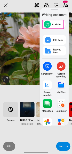 Altyazı bulmak için OPPO telefonlarında AI Yazma Asistanı kullanın