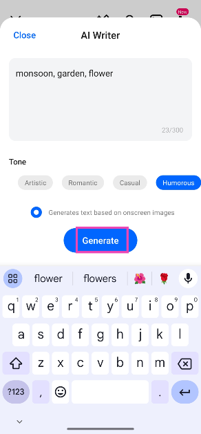 Adım 5:Yanındaki daireye dokunun 'Ekrandaki görüntülere dayalı metin oluşturur'.