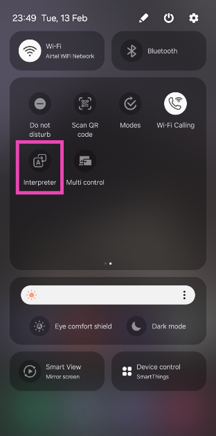 Durum çubuğundan aşağı kaydırın ve Hızlı Ayarlar menüsünde 'tercüman' karosuna dokunun.
