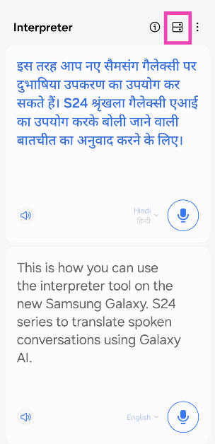 Adım 10:Konuşmayı bıraktıktan sonra Galaxy AItercüme etmekHedef dile konuşmanız.