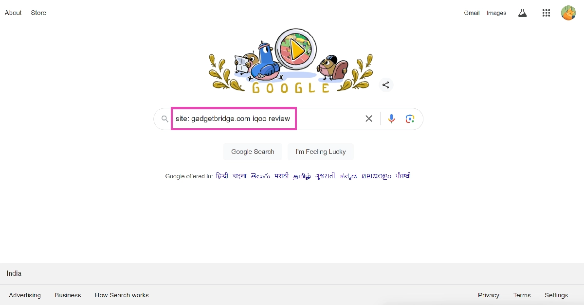 2. Adım:YazınArama sorgusu. Örneğin, IQOO akıllı telefonların incelemelerini arıyorsanız, yazınSite: Gadgetbridge.com IQOO Review.