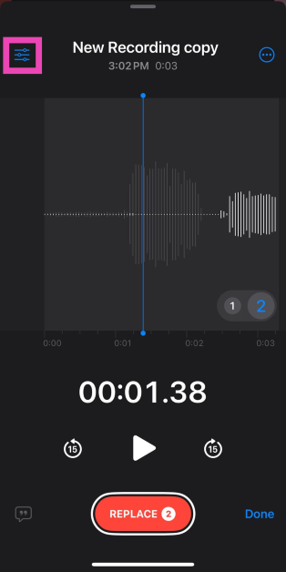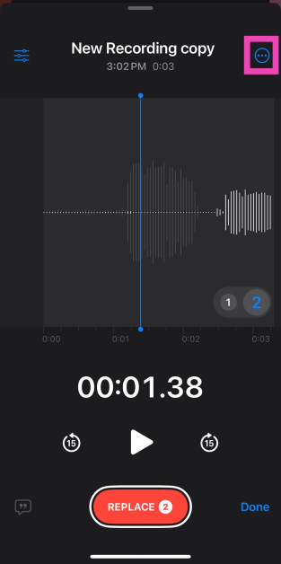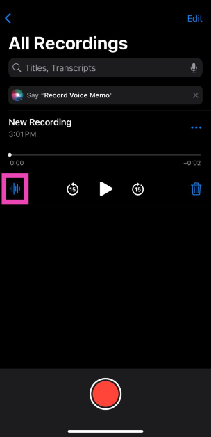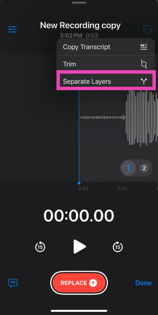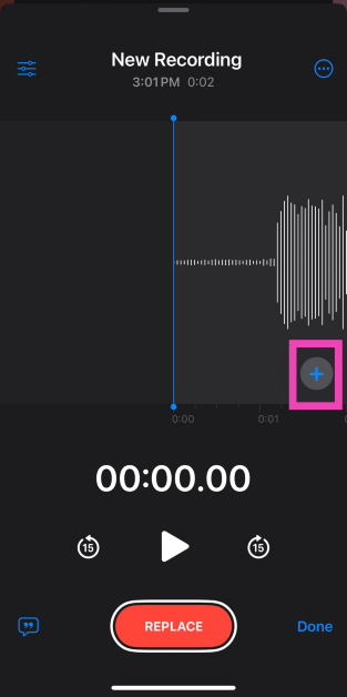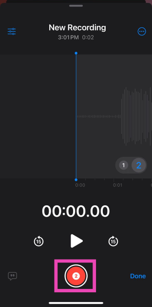 Sesli not uygulamasına gidin, bir ses notu seçin, dalga formu simgesine ve ardından Plus düğmesine dokunun ve ikinci bir katman kaydetmek için kırmızı düğmeye basın.