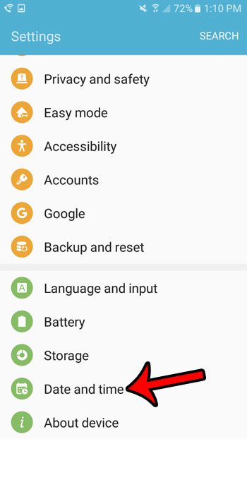 3. Adım: Aşağı kaydırın veTarih ve saatseçenek.