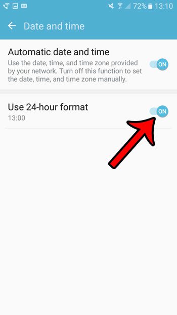 4. Adım: Sağdaki düğmeye dokunun24 saatlik format kullanınayarı etkinleştirmek için.