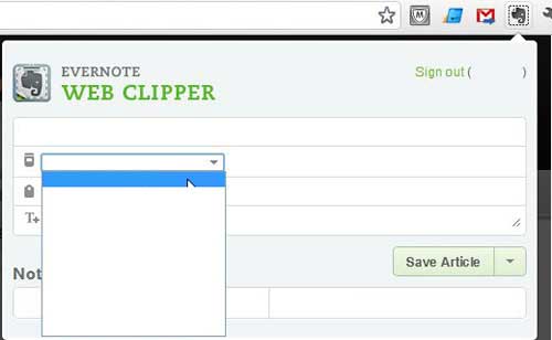 Web Clipper kurulduktan sonra yeni birEvernoteSimge tarayıcınızın sağ üst köşesinde görünecektir.