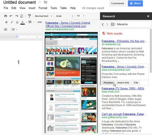Son olarak, tıklarsanızÖnizlemeDüğme, arama aracının solunda arama sonucu sayfasının bir önizlemesi görüntülenir ve belgenizden ayrılmadan sonuç sayfasının bir önizlemesini görüntülemenizi sağlar.