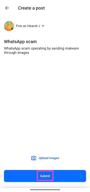 Adım 5:VurmakGöndermekişiniz bittiğinde. Gönderiniz dolandırıcılık feed'de görünecek.