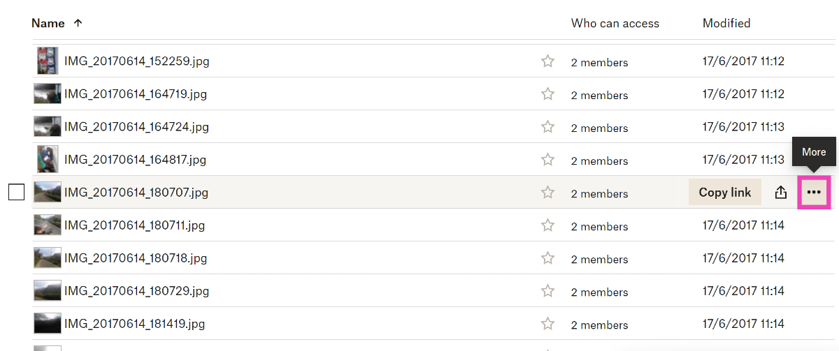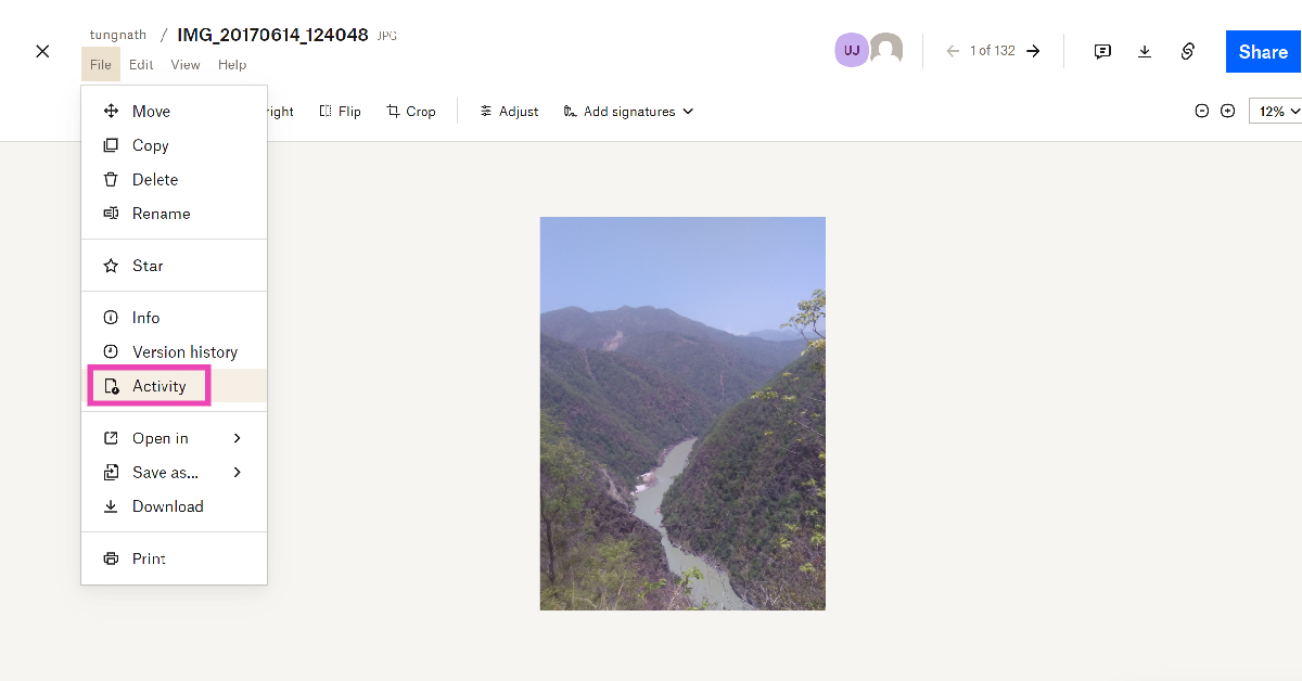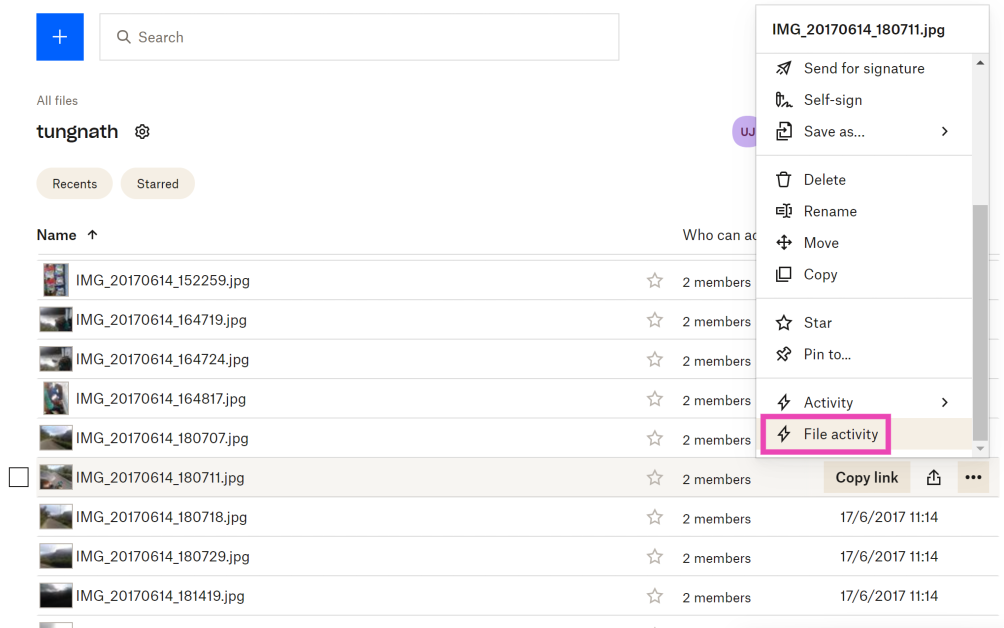 Dosyayı açmadan Dropbox Dosya Etkinliğini Görüntüle