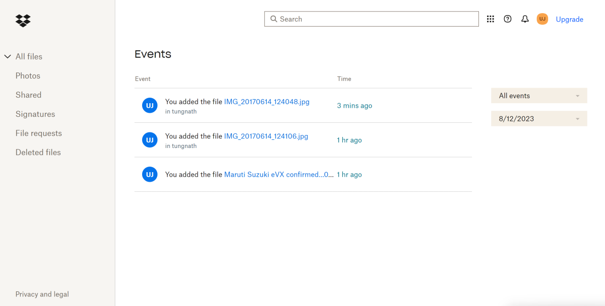 Dropbox'taki 'olay günlüğünüz', web sitesindeki tüm işlemlerinizin tam bir hesabıdır. Belirli bir dosya eklediğinizde, düzenlemeler yaptığınızda veya yorum yaptığınızda görüntüleyebilirsiniz. Etkinlik günlüğünüz yalnızca belirli bir dosyayı değil, tüm hesabınızı kapsar. Tüm girişler kronolojik olarak listelenir ve tarih veya olay türüne göre sıralanabilir. Hesabınızla birlikte balıkların devam ettiğini düşünüyorsanız, şüphelerinizi onaylamak için her zaman olay günlüklerini kontrol edebilirsiniz.