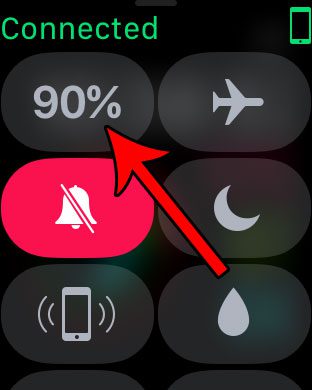 Adım 2: Kalan Apple Watch pil ömrünüzü ekranın sol üstünde bulun. Aşağıdaki resimdeki saatin pilinin% 90'ı kalıyor.