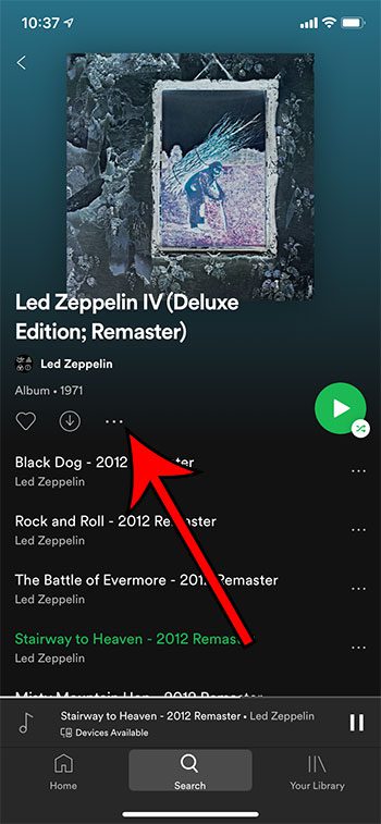 Bu ekrandaki albüm adının altındaki üç noktaya dokunursanız, tüm albümü çalma listelerinizden birine ekleme seçeneğiniz olduğunu unutmayın.
