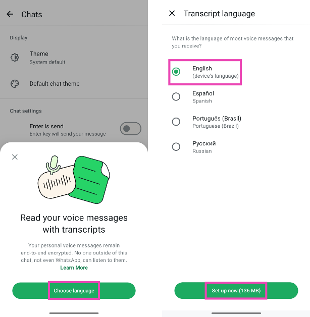 Çoğu hizmet transkripsiyon amacıyla AI'ya geçiş yaparken, WhatsApp'ın platformda uçtan uca şifrelemeyi sürdürme kararı, bu görev için hesaplamanın yalnızca cihazda gerçekleştiği anlamına gelir. Meta henüz bunu resmi olarak onaylamamıştır, ancak WhatsApp, kullanıcının sesli notlar için transkripsiyon kullanmaya başlamadan önce bir dil paketini indirmesini gerektirir. Bu, kullanıcı verilerinin transkripsiyon için üçüncü taraf bir sunucuya aktarılmadığı anlamına gelir.