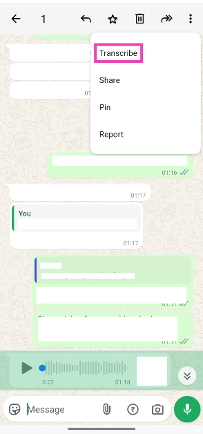 WhatsApp'ta ses notu transkripsiyonlarını görüntüle