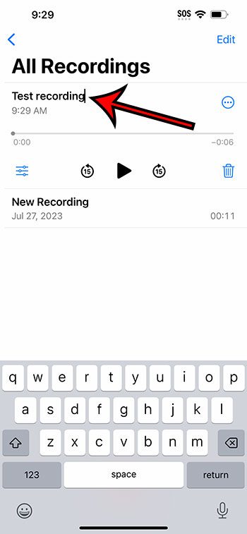 Daha sonra değiştirmek için kaydın adına dokunabilirsiniz. Sesli not altındaki kontrolleri geri çalmak için de kullanabilirsiniz veya silmek için Çöp Kutusu simgesine dokunabilirsiniz.
