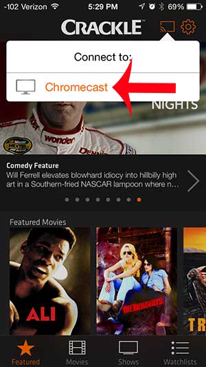 Neyse ki iPhone uygulaması aracılığıyla Crackle'dan Chromecast'inize akış yapabilirsiniz.