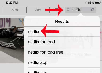 Adım 2: Ekranın sağ üst köşesindeki arama alanına dokunun, “Netflix” yazın, ardından “Netflix” arama sonucunu seçin.