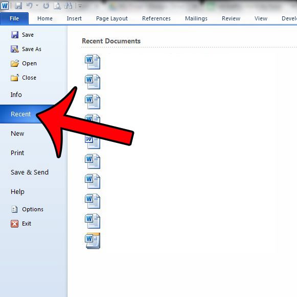 Microsoft Word 2010, Dosya sekmesindeki son seçeneği tıkladığınızda yakın zamanda üzerinde çalıştığınız belgeleri görüntüler.