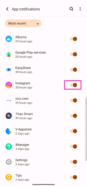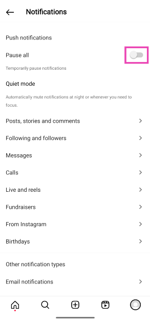 Instagram için sistem bildirimlerini duraklat