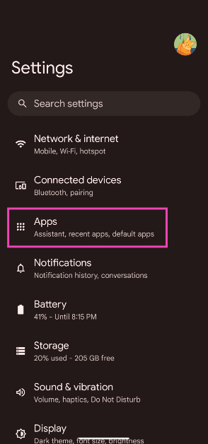 2. Adım:Aşağı kaydırın ve seçinUygulamalar.