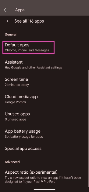 2. Adım:SeçmeVarsayılan uygulamalar.