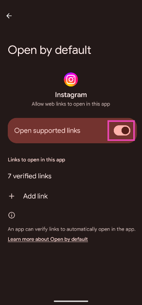 Instagram'ın desteklenen bağlantıları açmasını devre dışı bırakın