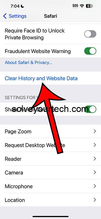 'Safari' ayarlarında, 'Net Geçmiş ve Web Sitesi Verileri' seçeneğini arayın ve bir musluk verin.