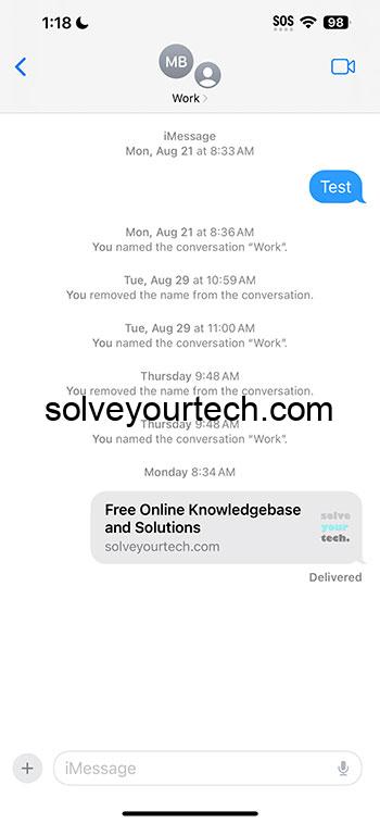 Bununla birlikte, bir grup sohbetinin adlandırılmasının SMS veya MMS grubu konuşmaları için yalnızca iMessage Grubu sohbetleri için kullanılabilir olduğunu unutmayın.