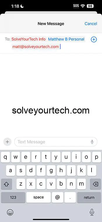 “To:” alanına dahil etmek istediğiniz kişilerin kişi adlarını, e -posta adreslerini veya telefon numaralarını girin veya kişilerinizden seçmek için “To” alanının sağ tarafındaki (+) ekle (+) simgesine dokunun.
