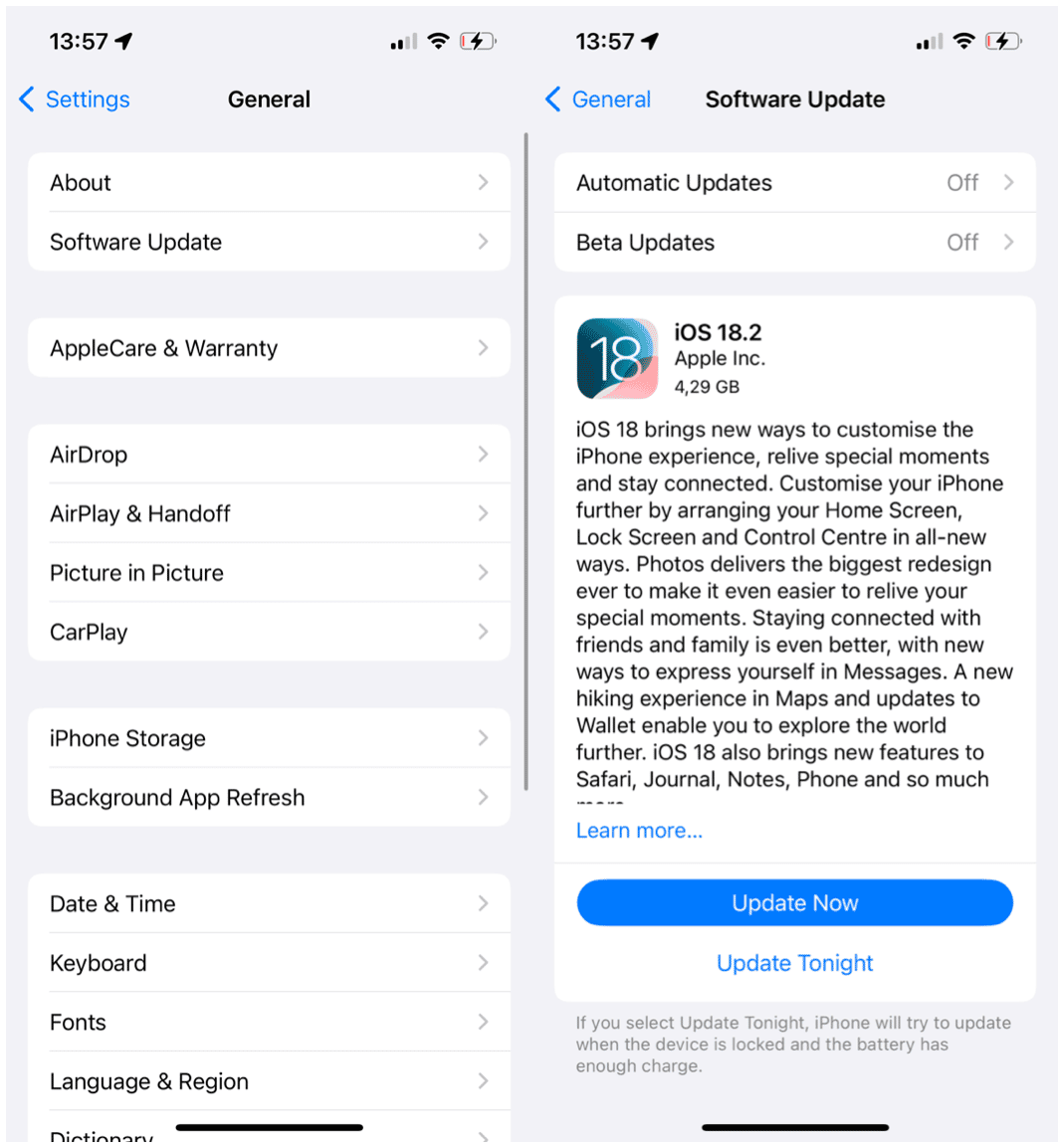 - Otomatik güncellemeler devam ediyorsa, aşağıda hangi iOS sürümünü kullandığınızı ve güncel olup olmadığını bildiren bir mesaj göreceksiniz.