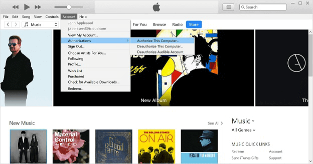 Bilgisayarınız, satın alınan müziği iTunes'da oynatmaya yetkili değilse, yetkilendirmeyi önceki PC'den kaldırmanız ve geçerli bilgisayardaki yetkiyi etkinleştirmeniz gerekir. Bilgisayarın iTunes'da müzik çalması için yetki vermek için aşağıdaki ayrıntılı kılavuz.