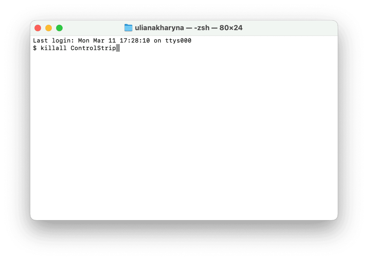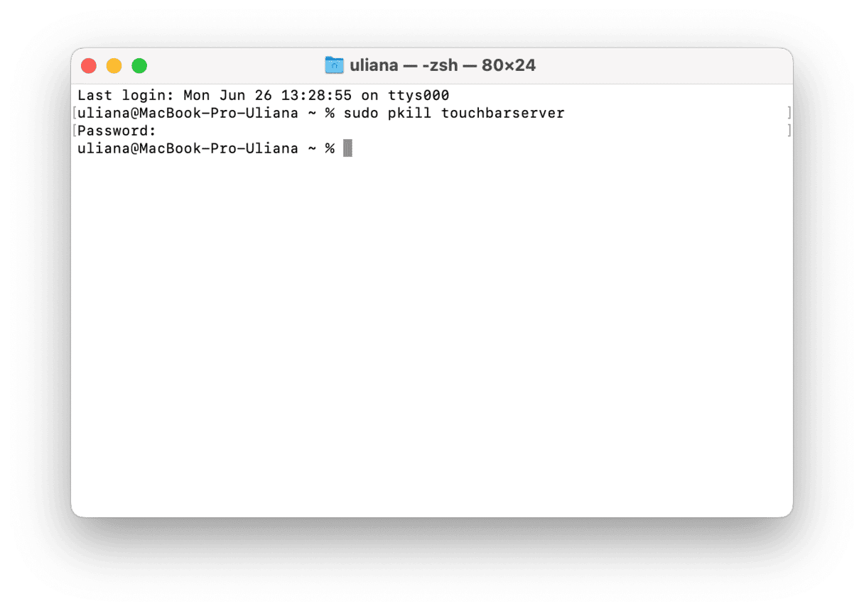 sudo pkill touchbarserver - Yönetici şifreniz için istenirse, yazın ve dönüş tuşuna basın.