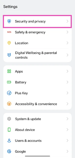 1. Adım:Gidip gelmekAyarlarve seçGüvenlik ve Gizlilik.