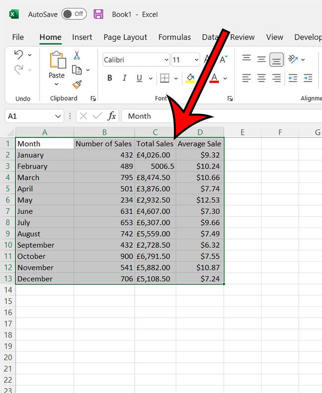 Adım 2: Tablo olarak biçimlendirmek için verileri seçin.
