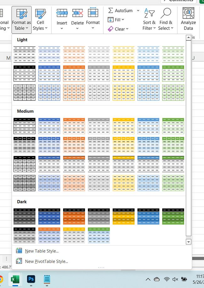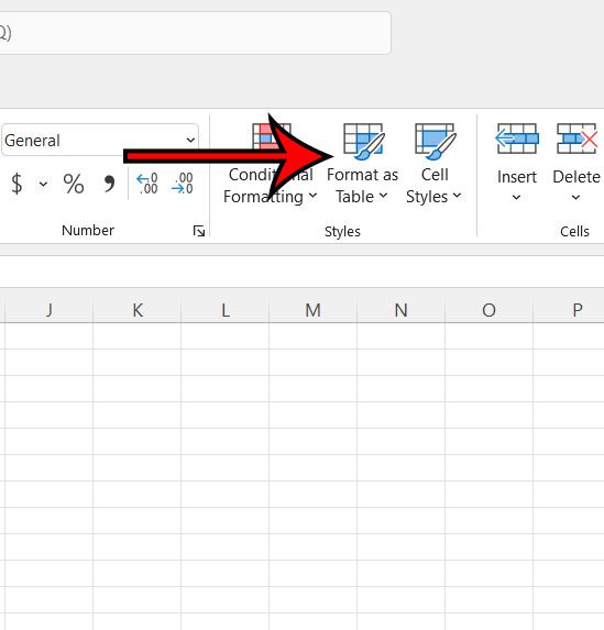 4. Adım: seçinTablo olarak biçimŞeridin stil grubundaki düğme.