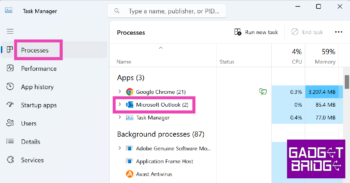 Ayrıca, çökmesini önlemek için Microsoft Outlook'u yeniden başlatmayı da deneyebilirsiniz. Bunu yapmak için önce sürecini bitirmeniz gerekir. Bunu nasıl yapabilirsiniz.