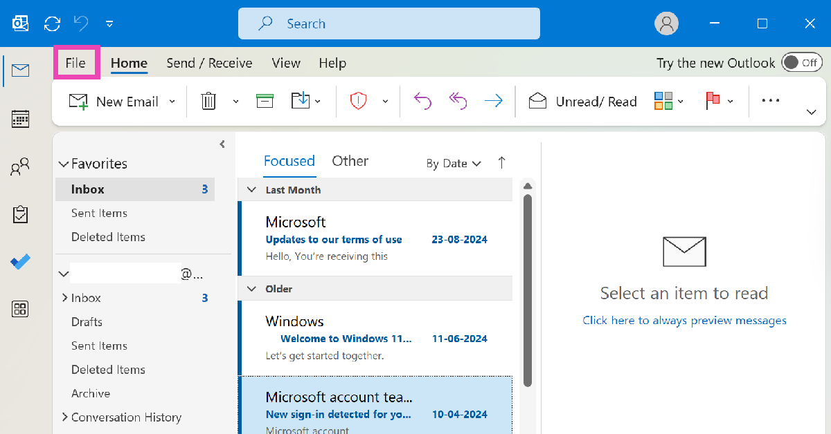 1. Adım:BaşlatmakMicrosoft Outlook uygulamasıPC'nizde.